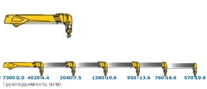 Грузоподъемность - 7,3 тонн. Вылет - 7,58 метров.