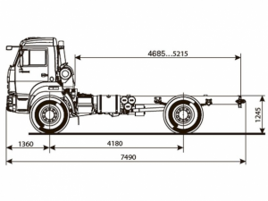 Шасси 4*4, длина рамы 4 685-5 200 мм, грузоподъемность 5,24-5,95 тонн