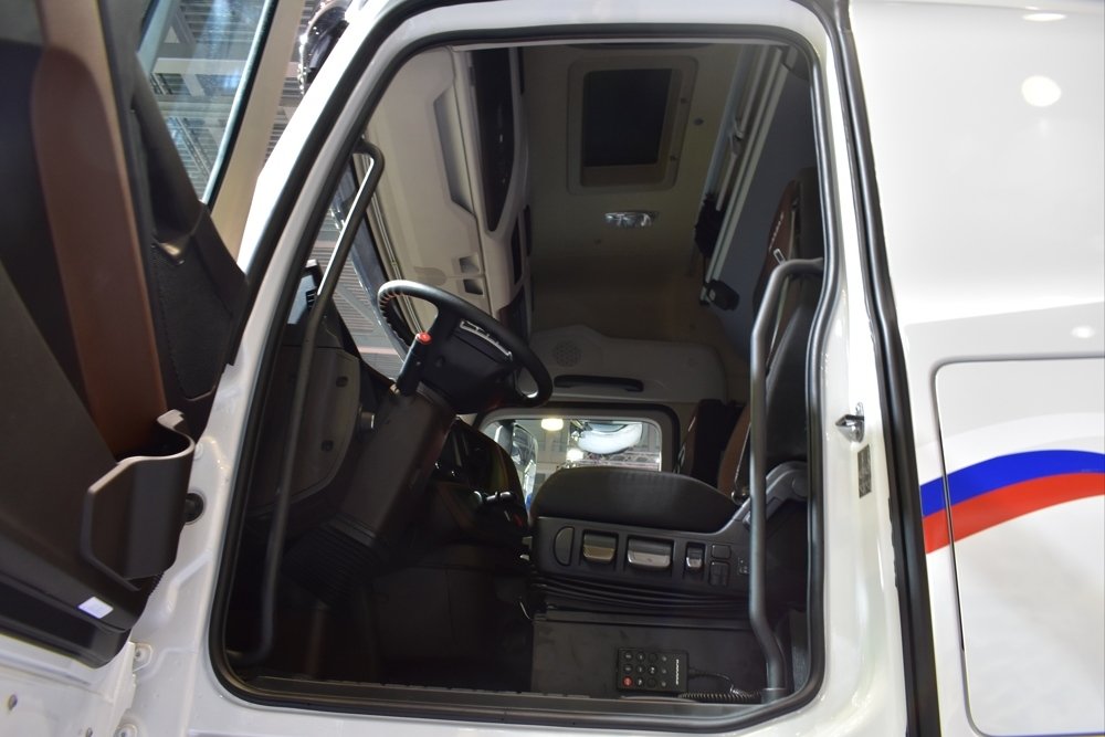 Кабина представлена удобным рабочим местом водителя, которое по уровню комфорта соответствует автомобилям премиум категории.