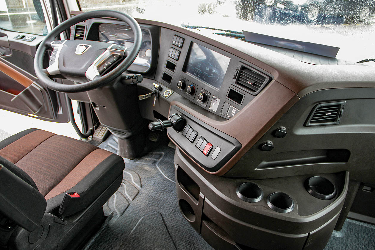 Общее расстояние от пола до потолка в кабине составляет 1,98 метра при обеспечении внутренней ширины на отметке 2,27 метра. Производителем предусмотрены основные инструменты настройки работы и управления с доступом на расстоянии вытянутой руки, предусмотрены варианты регулировки сидений. Классическая комплектация транспортного средства рассчитана на одно спальное место, установлена бортовая система предоставления информации о грузовике. Кабины оснащают продвинутым сенсорным экраном на 10 дюймов, возможностью просмотра текущего статуса основных узлов и агрегатов, параметров машины.
